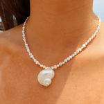 Turn heads with this stunning freshwater pearl and large turbo shell necklace.